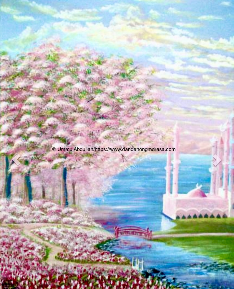This painting was painted according to a request of one sister, She presented it to her little daughter MashaAllah. The theme was really amazing, A mosque and a Japanese bridge and garden, finally it was the result of this beautiful painting MashaAllah. and we named it ” Hadiqatul Ard” meaning “The garden of this earth”. Truthfully to a mother, her family and children are the real peace and garden of this earth Alhamdulillah.